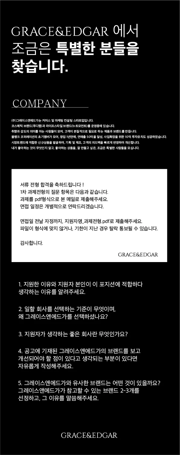 아래의 과제전형을 서류 전형 통과 후 자유로운 양식으로 제출해 주시기 바랍니다.