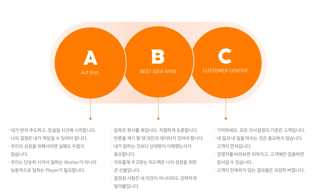 티몬은 구성원들이 스스로 의사결정을 통해 주도적으로 일하는 문화를 핵심가치로 공유합니다. 모든 구성원들이 몰입해서 지속적인 혁신을 만들어낼 수 있도록 조직에 자유와 책임의 문화를 정착시키고자 노력하고 있습니다.