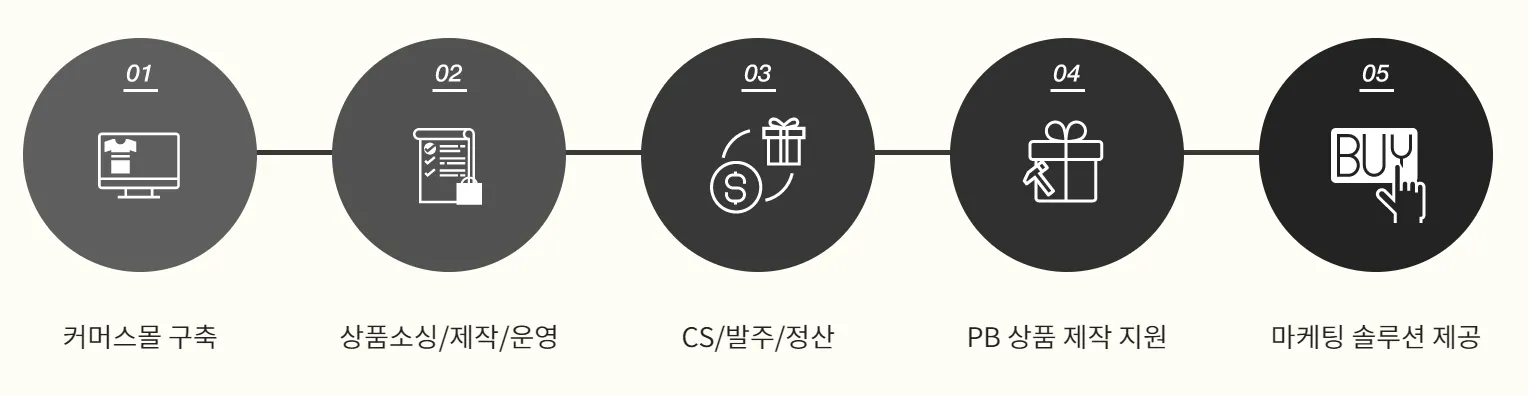 셀러밀은 B2B 커머스 종합운영 서비스로서 쇼핑몰 운영에 필요한 전반적인 업무를 대행합니다. 셀러밀에서 제공하는 아이디어 상품을 자사 쇼핑몰 컨셉에 맞도록 추천 및 선택이 가능하며 판매자가 직접 상품을 소싱하여 판매할 수 있습니다. 아울러 경쟁력 있는 자체 PB상품 판매로 사업을 디벨롭할 수 있는 방향을 제시해드립니다.